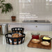 Kurven er fremstillet af sort kunststof med bund i FSC®-certificeret bambus og fås i to størrelser, der kan stables, når de ikke er i brug.