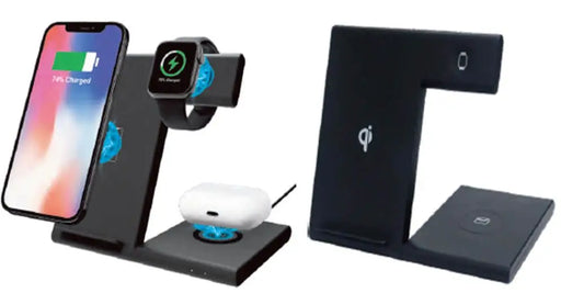 Conzept - Mobiloplader Trådløs 3-i-1 Med USB-C Kabel - Sort